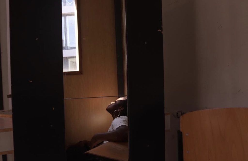 A self-portrait that reflects a sense of imprisonment, with light as the only source of liberation.